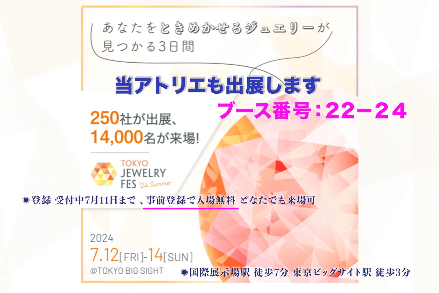 2024年 7月 12日 ~ 14日 当アトリエのブース番号は22−24となります.